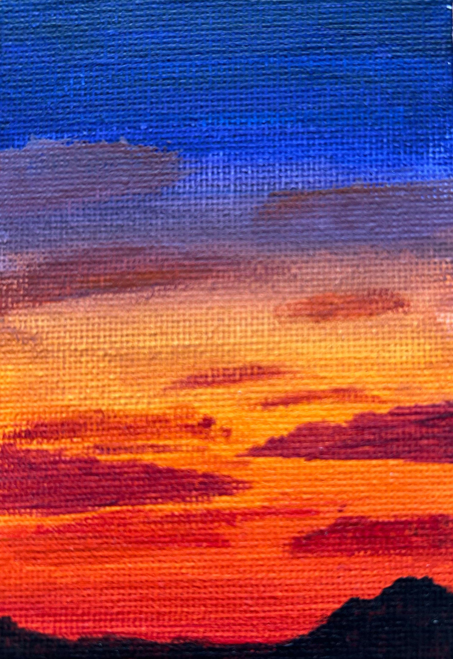 小さなキャンバスに夕焼け空を描きました。山の影が気に入ってい