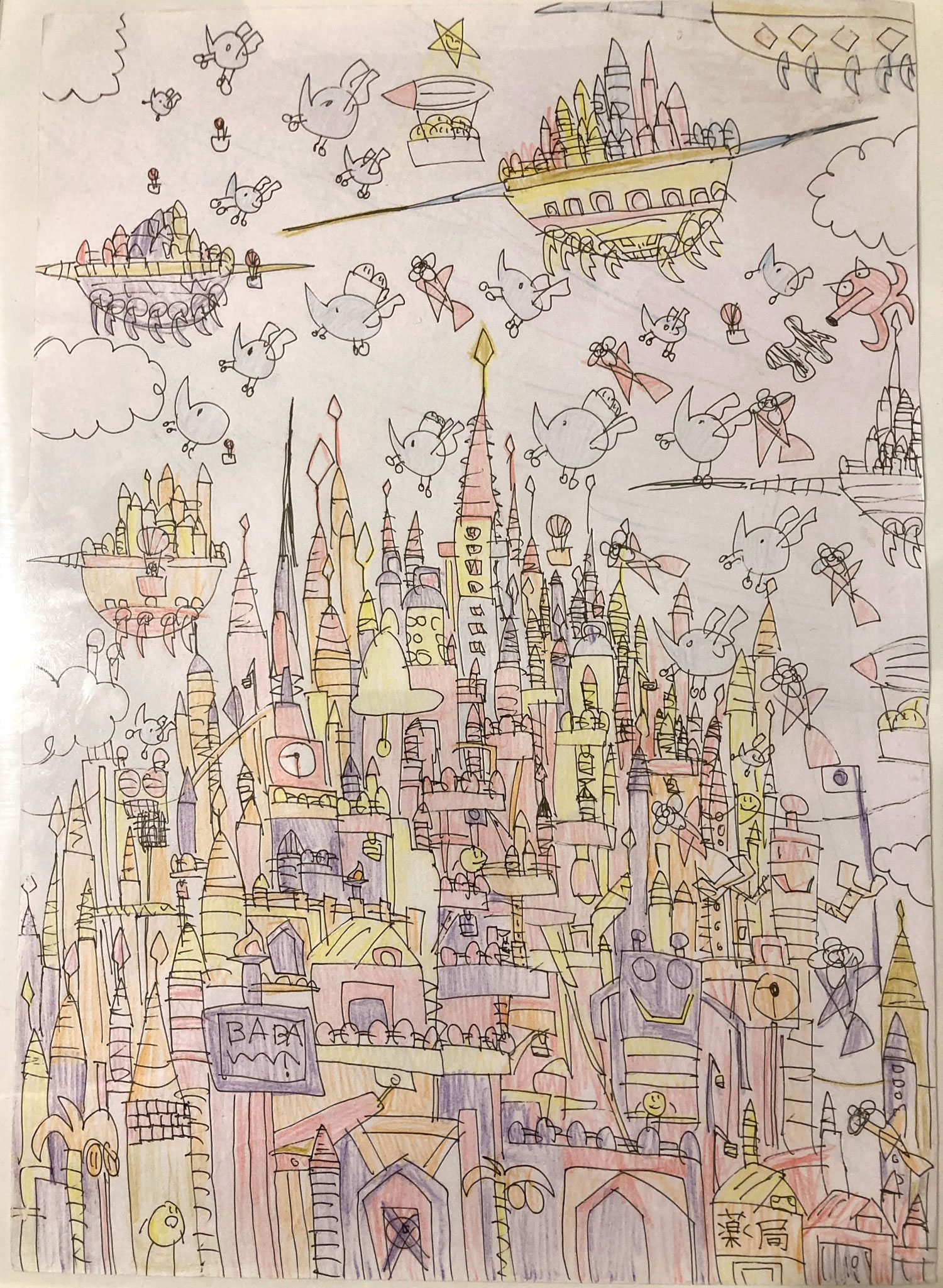 空に浮かぶ、お城のような秘密基地で、ボクが考えたキャラクター