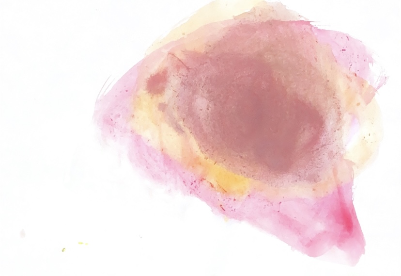 はじめて水彩絵の具と筆を描きました。工夫は好きな色を重ねたと