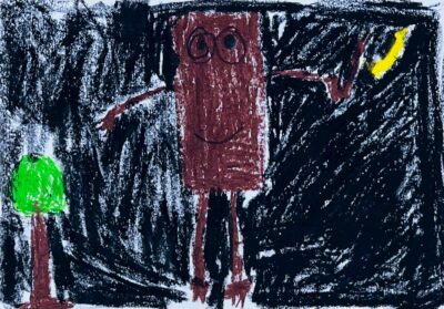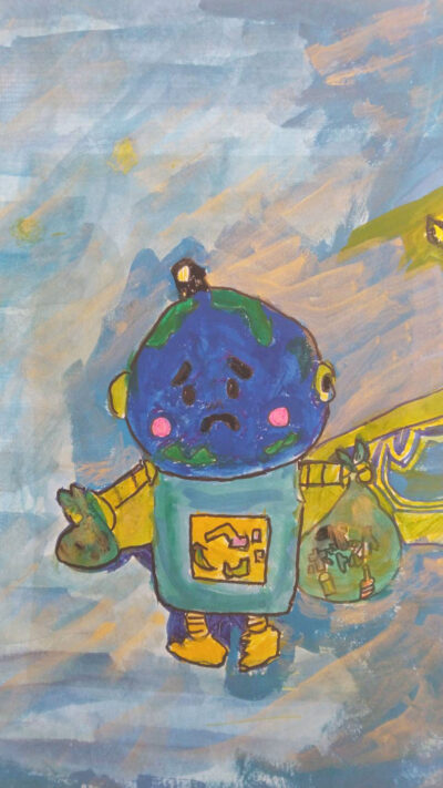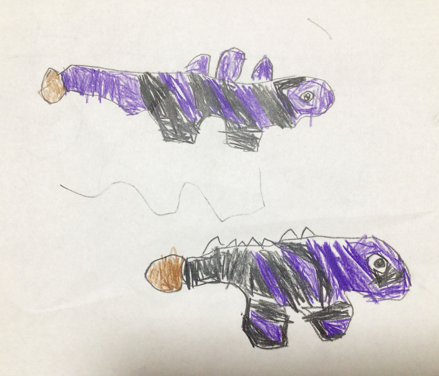 「きょうりゅうのこども と お父さん」を描きました。 細かいところまでじっくりを描き上げ素敵な作品になりましたね!