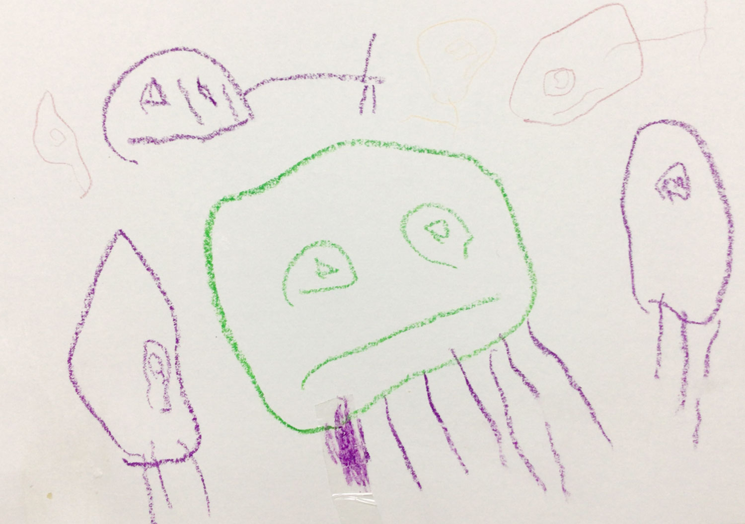 だいすきなくらげ・いか・おさかなを描きました。