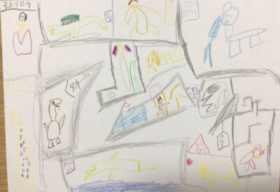 絵を描くのが苦手なので折り紙をちぎって貼って作りました。