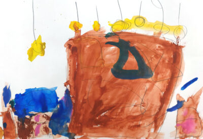 子供が好きなものを描くものを絵の具が描かれている、作るものを粘土が再現しているものをイメージして描きました。 絵の具の塗り方に関しては色鮮やかなものを選び、明るいもの、実際にあるもの、緑の色、屋根の色、下描きされていないものを塗って再現することを意識しました。