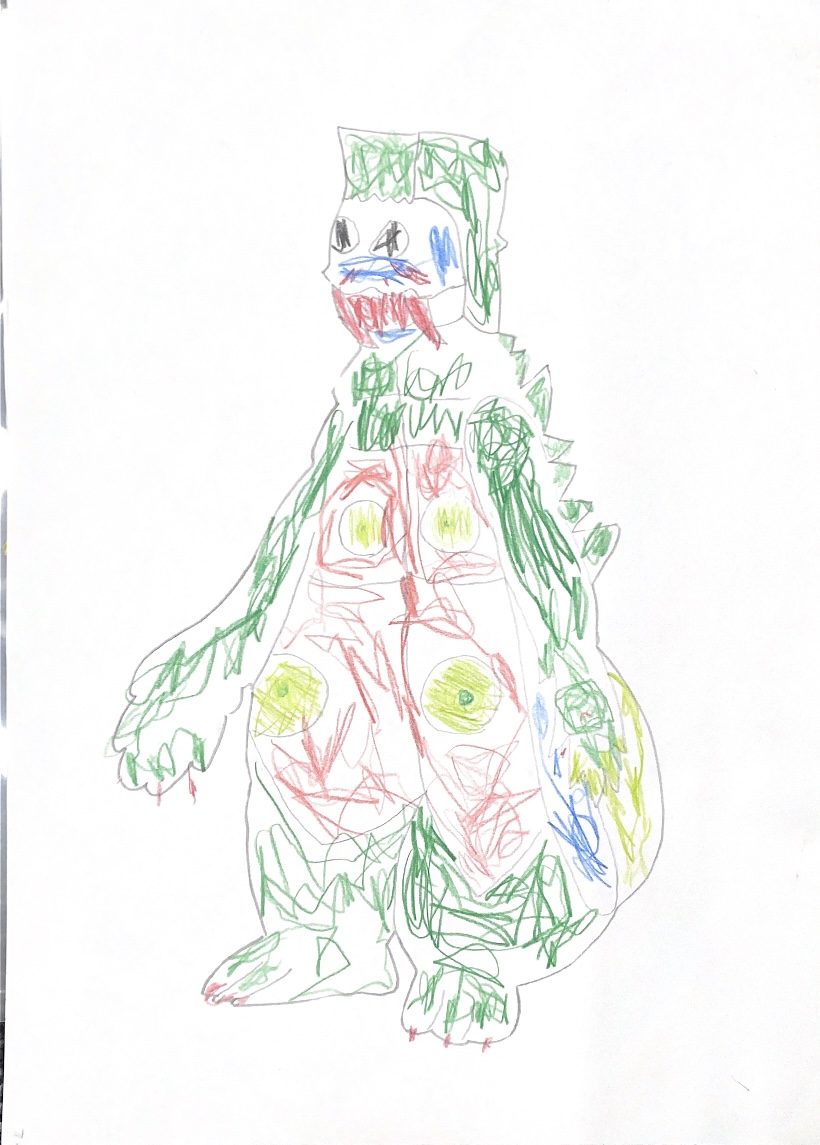 ドラゴリーをかきました。(ウルトラマンのキャラクター)くふうしたところはあたまのところです。