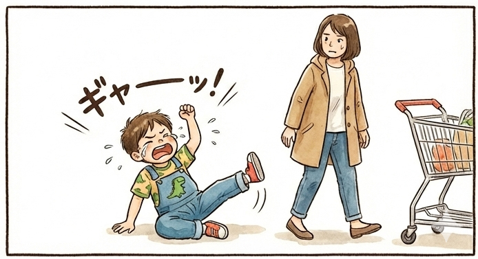 癇癪を起こした結果、「要求が通ってしまった(お菓子を買ってもらえた等)」という成功体験をさせてしまうと、問題行動は繰り返されやすくなります。周りの目が気になる場面でも、「泣いても要求は通らない」という一貫した態度が、長期的にはお子様のためになります。