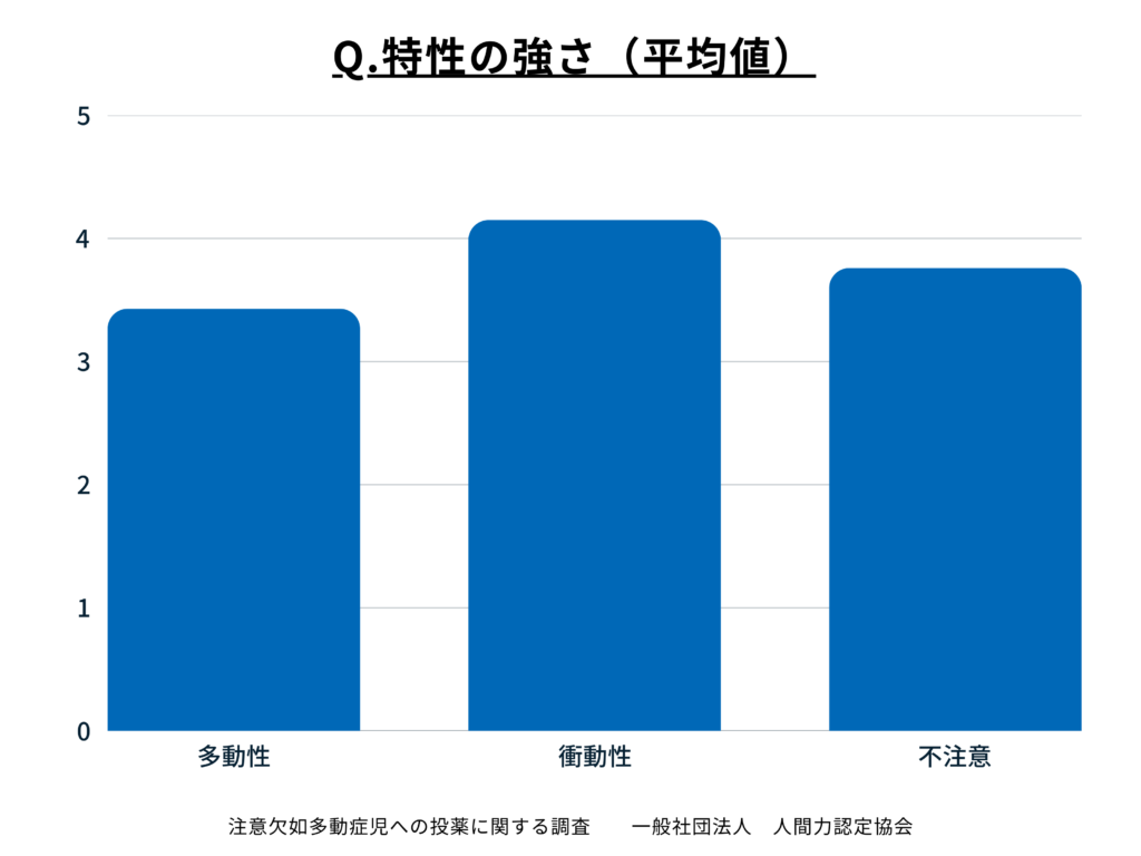 特性の強さについて尋ねたところ、特に衝動性の問題が現れていることが確認されました。